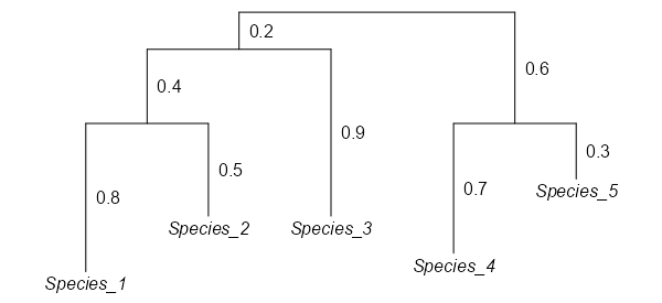 | L = \{0.2, 0.4, 0.8, 0.5, 0.9, 0.6, 0.7, 0.3\} | The branch lengths. |